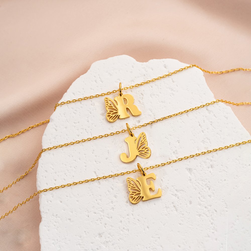 Ce collier est composé d'un papillon et d'une initiale. Les ailes délicates du papillon se fondent harmonieusement avec l'initiale. Il conserve la signification symbolique du papillon - qui représente la transformation et la beauté - tandis que l'initiale personnalisée ajoute une touche d'individualité. Vous pouvez le personnaliser avec votre initiale, ce motif simple mais élégant, imprégné d'une riche signification symbolique.