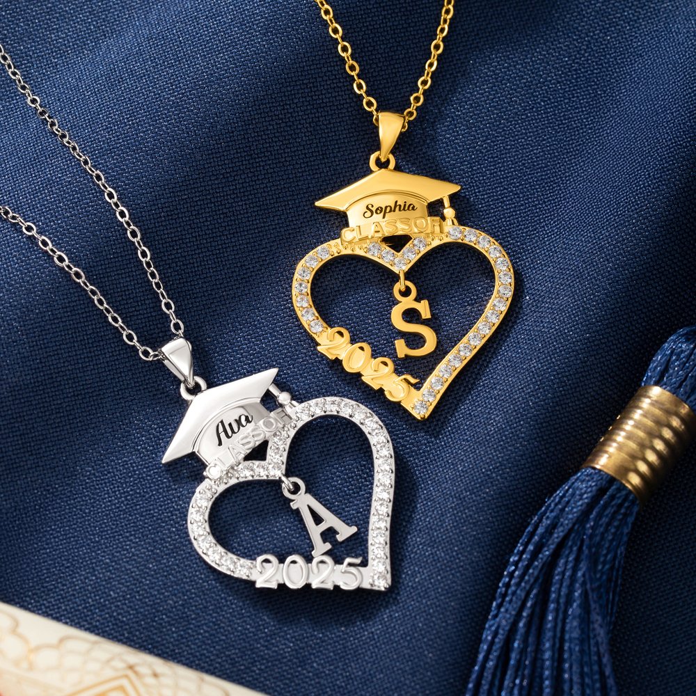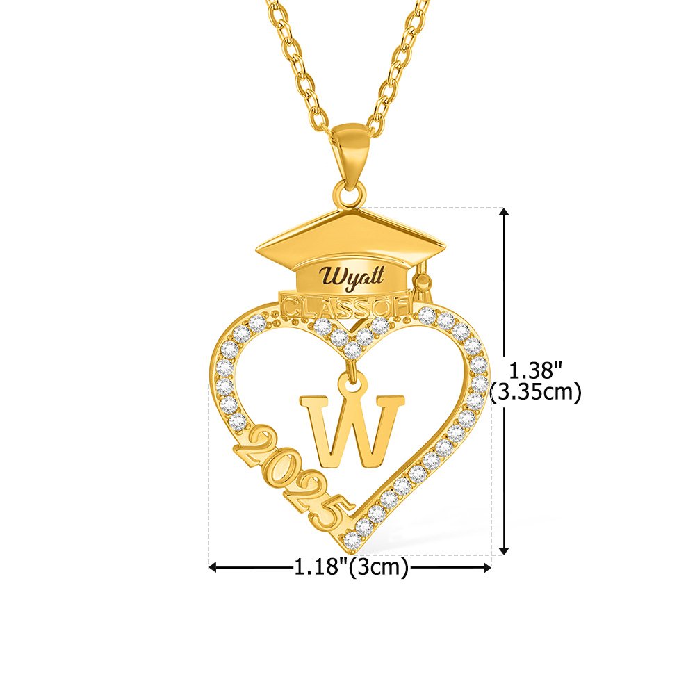 Ce pendentif, dont les éléments principaux sont le bonnet de fin d'études et le cœur, combine astucieusement le bonnet de fin d'études, le cœur et l'initiale personnalisée, ce qui donne un design exquis qui convient parfaitement à l'esthétique des femmes diplômées. Il peut être personnalisé avec des initiales, des noms et l'année d'obtention du diplôme, ce qui fait de ce bijou un souvenir unique.