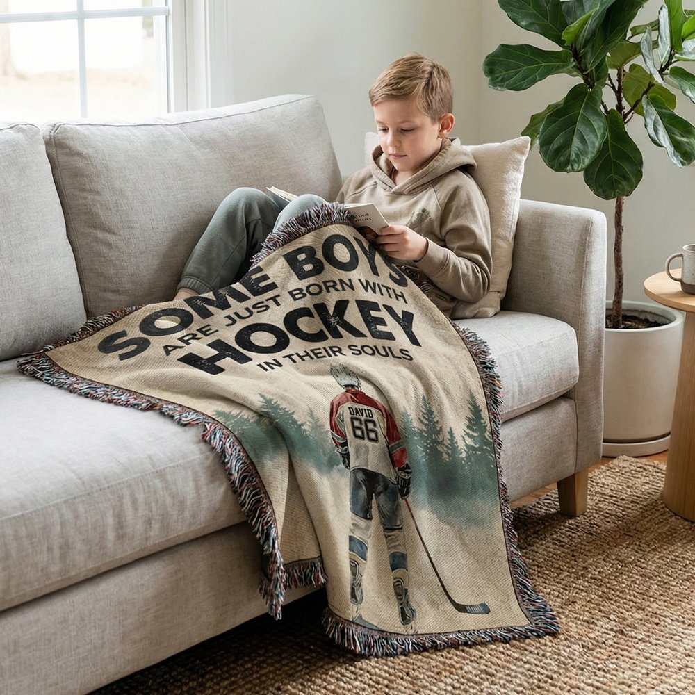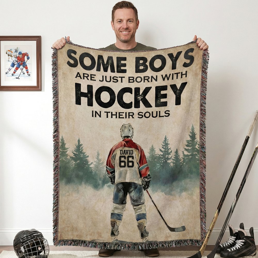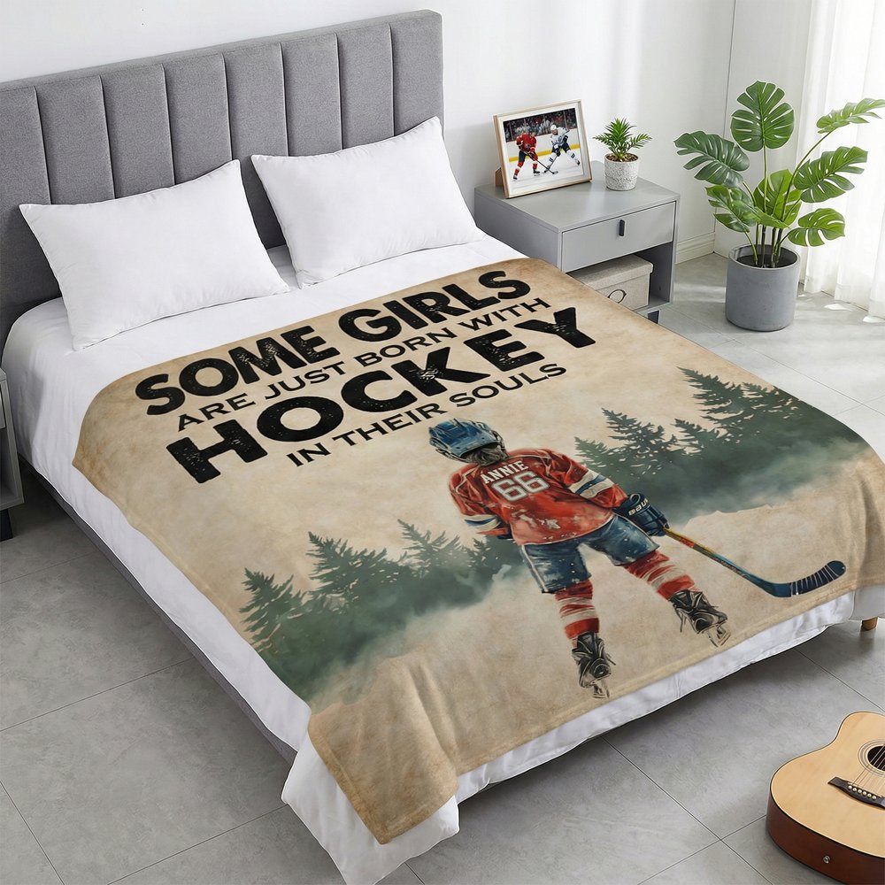 Couverture douce personnalisée avec nom et numéro de joueur de hockey Anniversaire Utilisation quotidienne Cadeau de jour de match pour les fans de hockey Athlètes